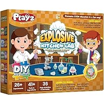 Amazon Com Playz Explosive Kitchen Lab Educational Science Kit For Kids Age 8 12 With 26 Science Experiments To Make Citrus Rockets Sour Led Lights More Chemistry Set Toys For Boys Girls